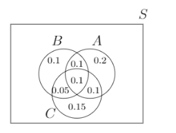 Lad \(A, B\) og \(C\) være tre hændelser med sandsynligheder givet: